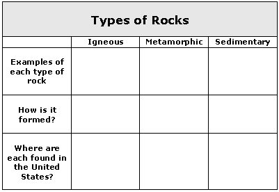 Create a Jot Chart on the chalkboard or on an overhead transparency or produce a print copy for each student. The chart/matrix should be structured as follows: